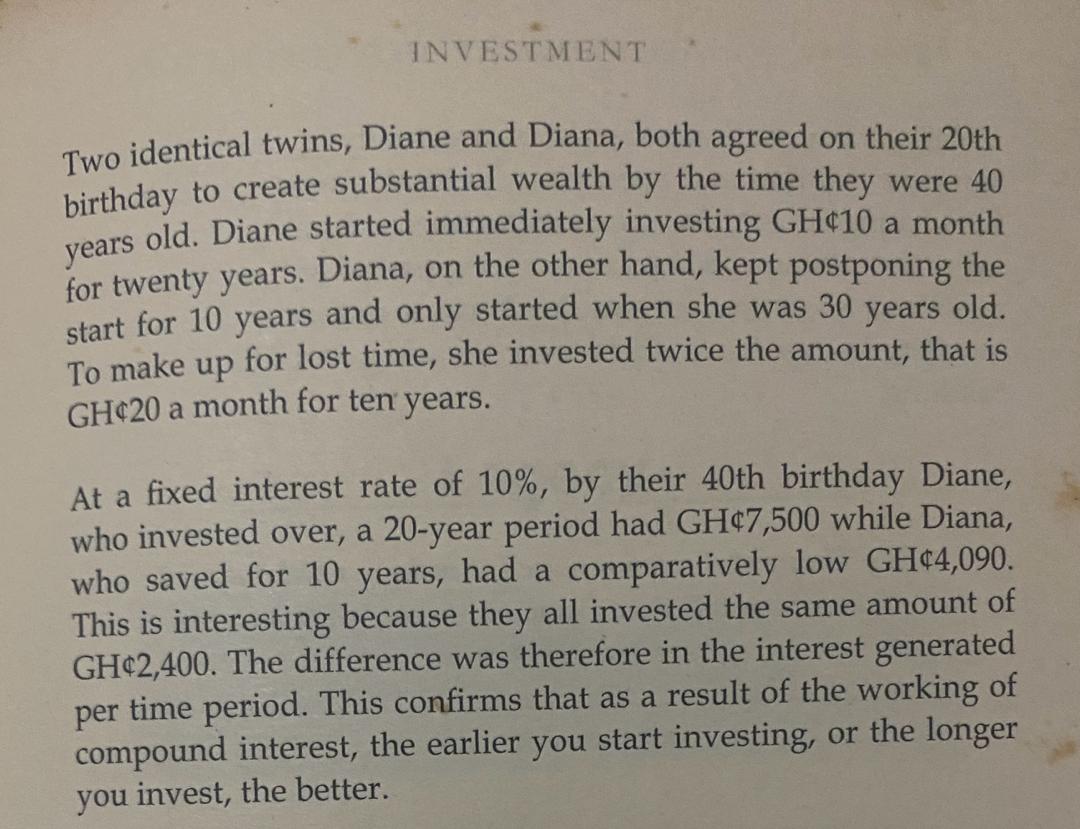 In their book, 101 Keys to Achievement & Fulfillment, Rev. Albert & Comfort Ocran shared an unforgettable story that explains vividly the need to invest and the power of compound interest.
