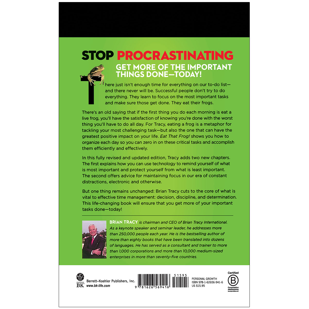 The book begins by explaining the metaphor of “eating a frog” – doing your most difficult but important task first thing each day. It emphasizes that by developing this habit, you can dramatically increase your productivity and success.